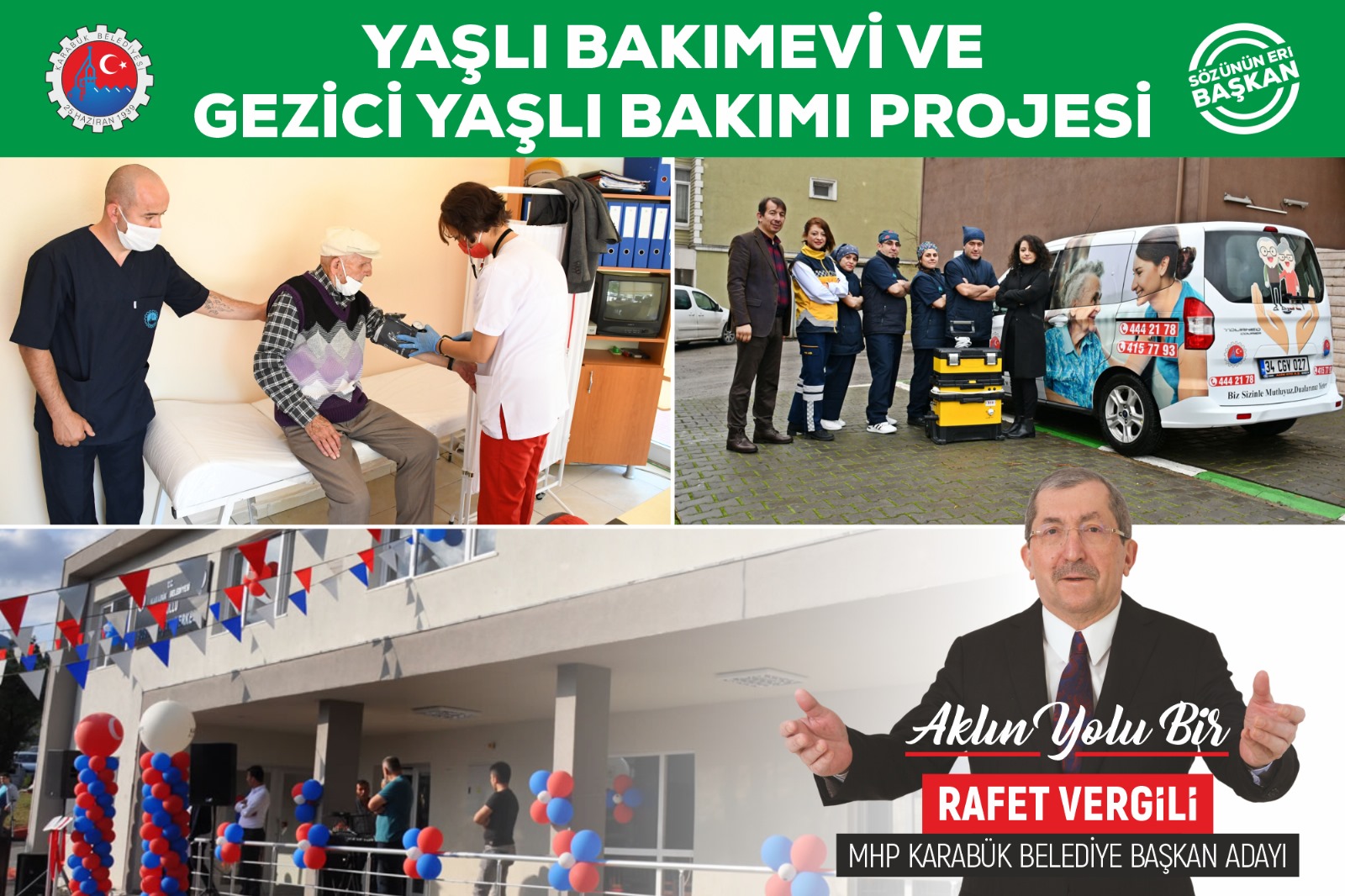 1.000 Adet Sosyal Konut ve 5 Adet Yeni Gündüz Çocuk Bakımevleri projelerini yeni dönem projesi olarak kamuoyuyla paylaşan Karabük Belediye Başkanı ve Milliyetçi Hareket Partisi Karabük Belediye Başkan Adayı Rafet Vergili, 3. önemli projesi olarak Yaşlı Bakımevi ve Gezici Yaşlı Bakımı projesini 4. dönem projesi olarak açıkladı.