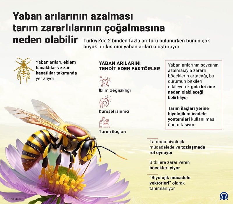 Türkiye‘de 2 binden fazla arı türü bulunurken bunun çok büyük bir kısmını, özellikle tarımda biyolojik mücadelede ve tıpkı bal arıları gibi tozlaşmada rol oynayan yaban arıları oluşturuyor. Bal arısı bakımından zengin biyoçeşitliliğe sahip Türkiye, dünyadaki 30 bal arısı alt türünün 5’ine ev sahipliği yapıyor.