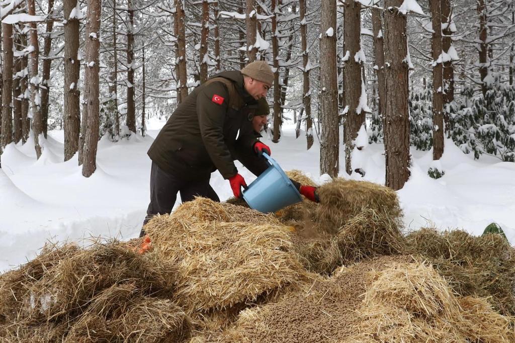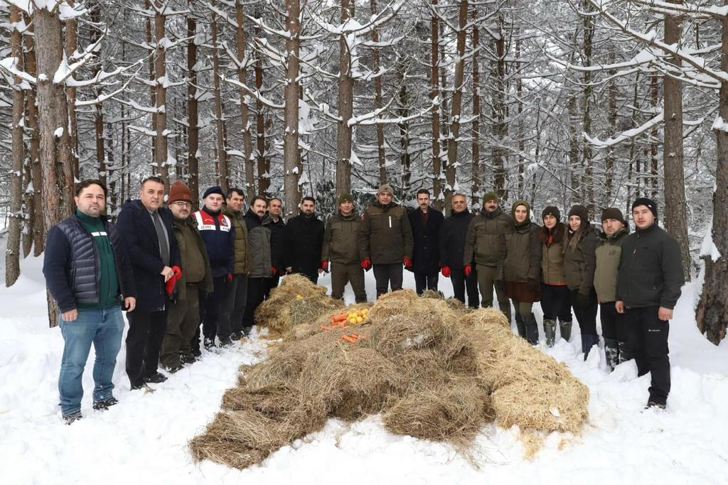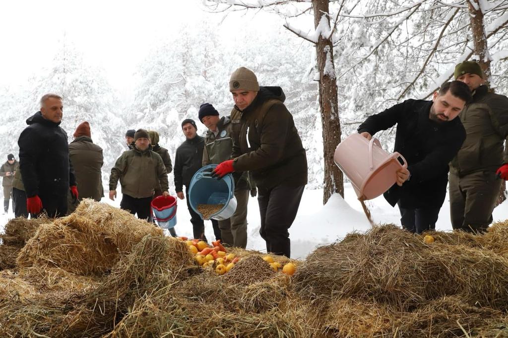 Vali Selçuk Aslan da çetin kış şartlarında yiyecek bulmakta zorlanan yaban hayvanları için Doğa Koruma ve Milli Parklar Müdürlüğüne bağlı ekiplerle doğaya sebze, saman, ot ve yem bıraktı.