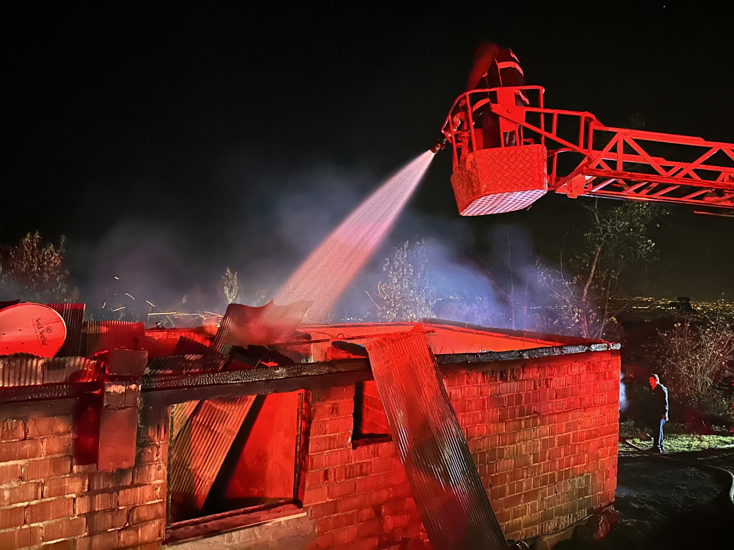 İlçeye bağlı Saçmalıpınar Köyü’nde, Ahmet Sivil’e ait tek katlı evde, mutfak tüpünden çıktığı tahmin edilen yangın kısa sürede büyüdü.