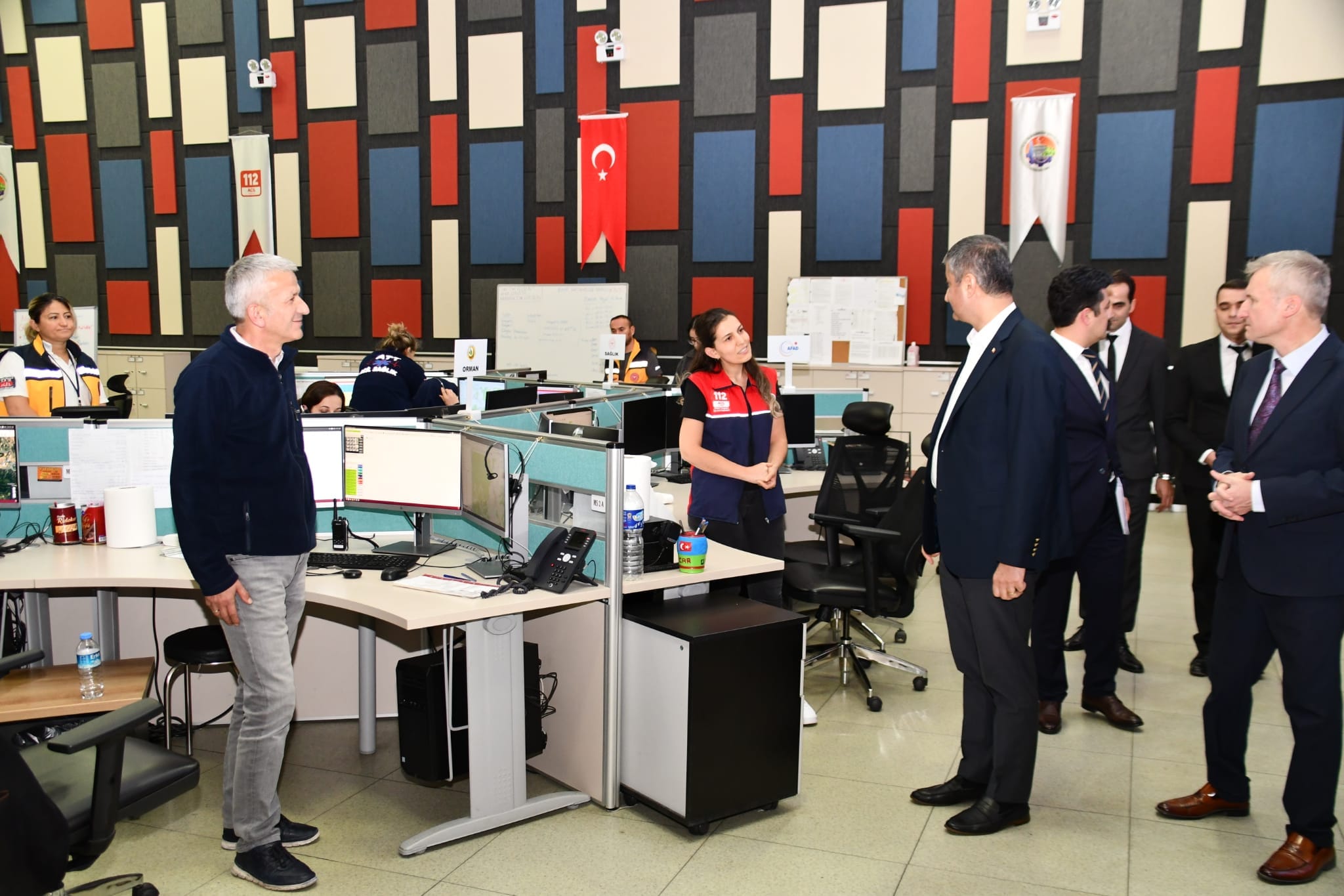 Vali Mustafa Yavuz, Müdürlük ve Merkez birimlerini tek tek gezerek 24 saat esasına göre çalışan 112 Acil Çağrı Merkezi Müdürlüğü ve GAMER görevlisi personele özverili çalışmalarından dolayı teşekkür etti.