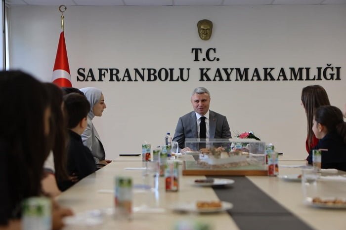 İlçedeki özel bir kolejin 5. sınıf öğrencileri ve öğretmenlerini kabul eden Yazıcı, çocuklara yerel yönetimler hakkında bilgi verdi.