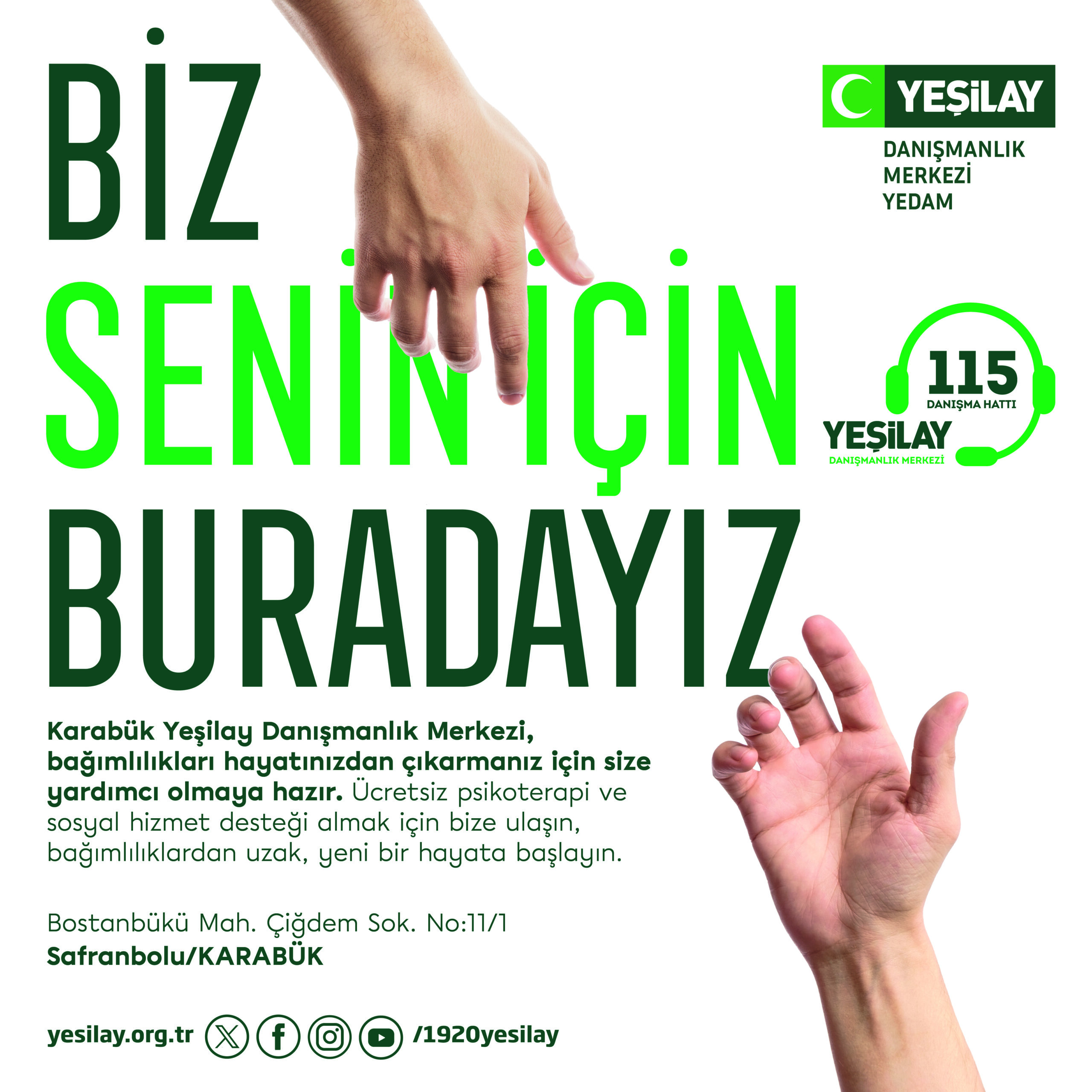 Karabük Yeşilay Danışmanlık Merkezi (YEDAM), bağımlılıkla mücadelede vatandaşlara ücretsiz psikoterapi ve sosyal hizmet desteği sunarak, yeni bir hayata adım atmaları için yardımcı oluyor.