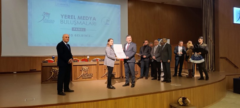 Panel sonrası Rektör Kırışık tarafından panele katılan yerel gazetecilere Teşekkür Belgesi takdim edildi.