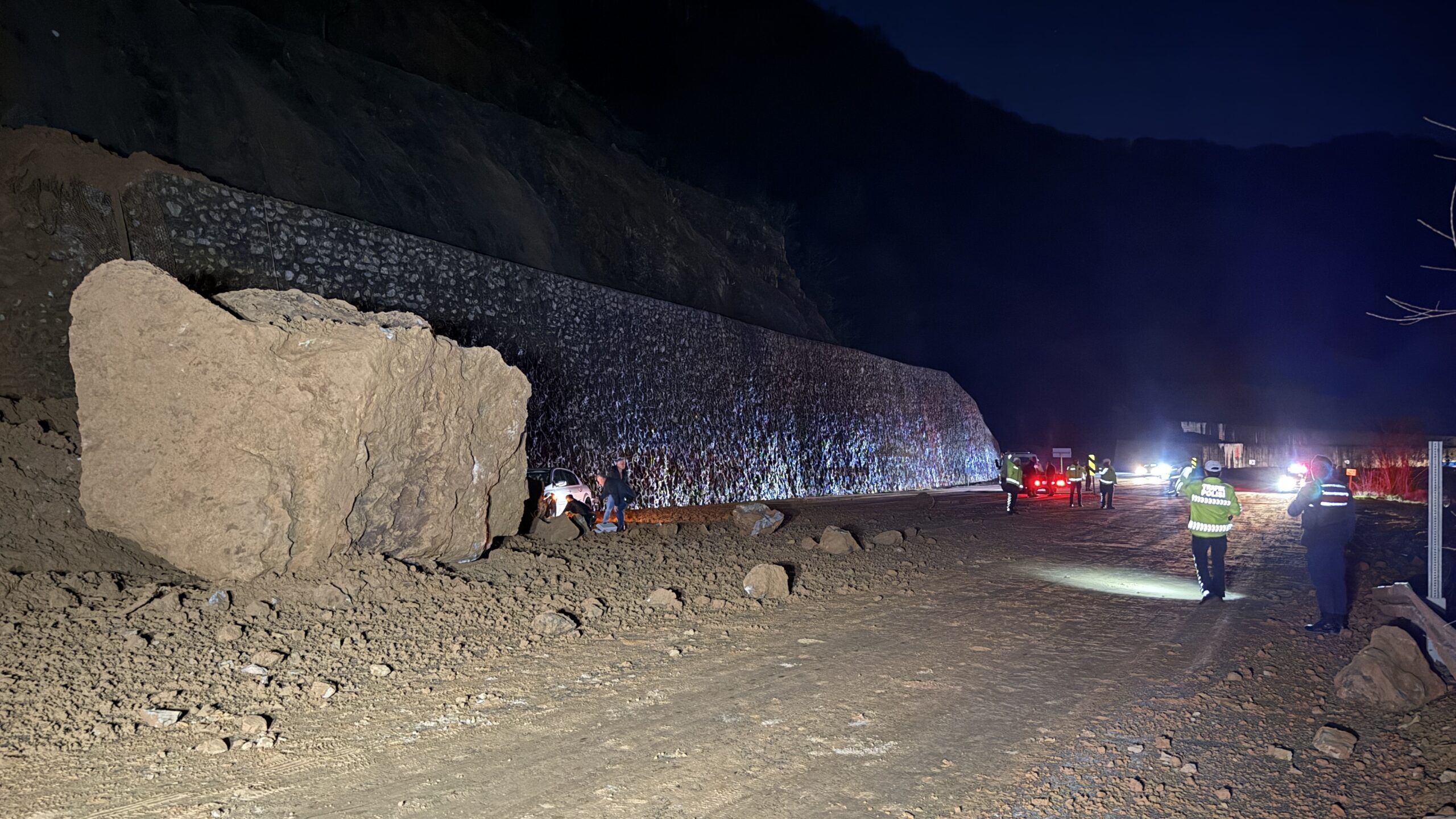 Güzergahta seyir halindeki bir otomobilde, düşen kaya parçaları nedeniyle hasar oluştu.