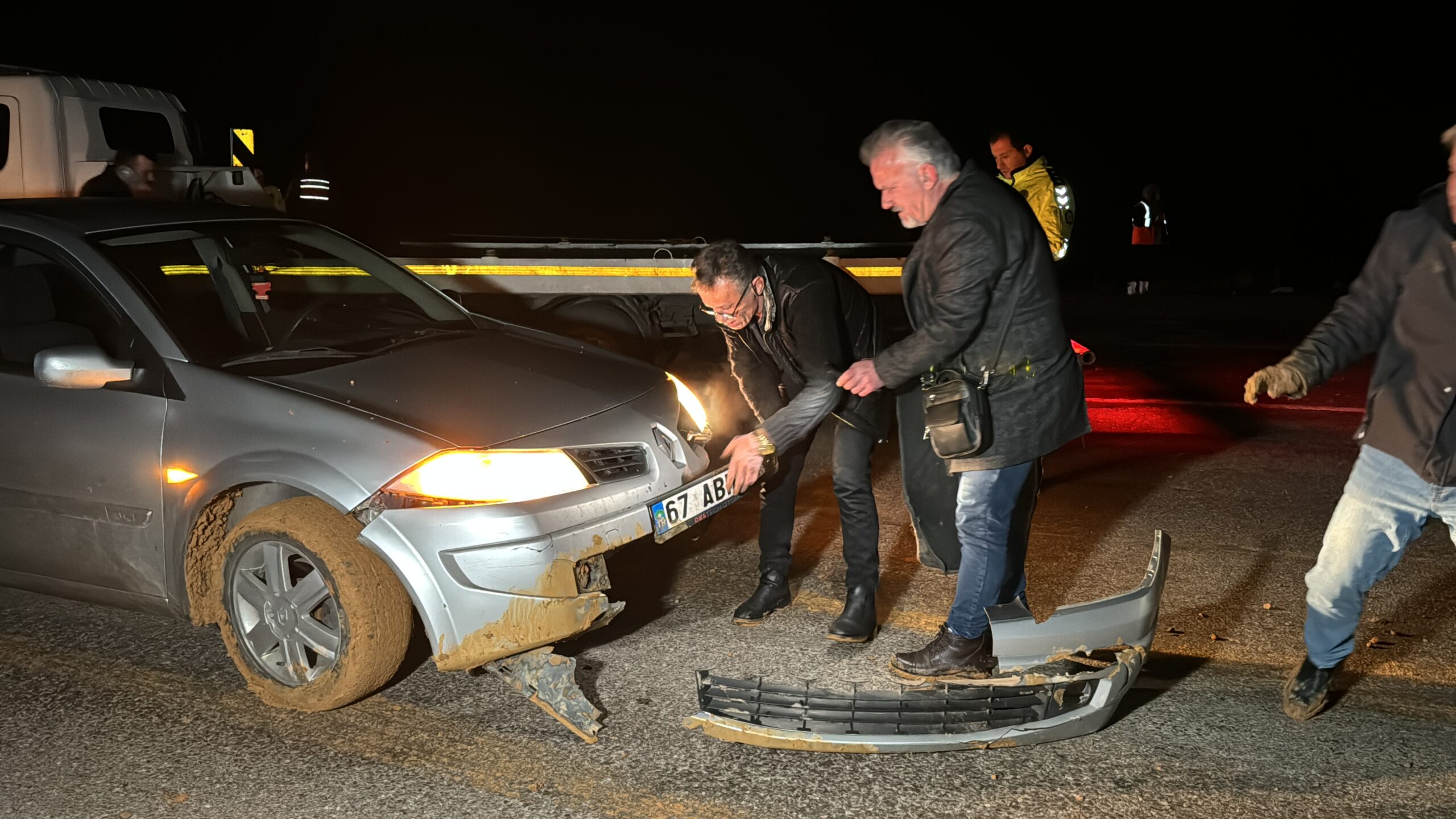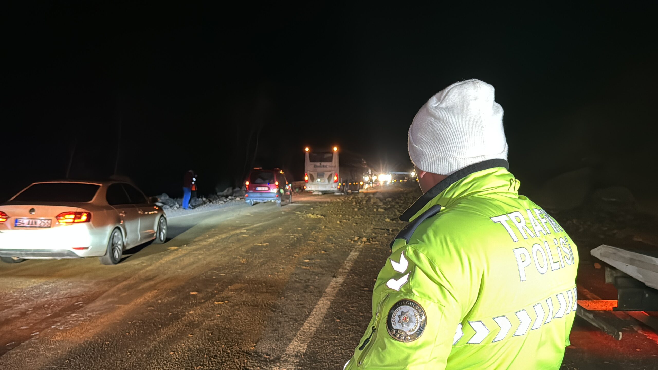 Polis ve jandarma ekipleri, güvenlik önlemi aldığı kara yolunun tek şeridini ulaşıma kapattı.