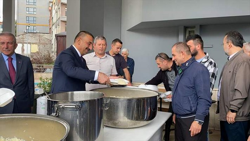 Vali Osman Hacıbektaşoğlu ve protokol üyeleri, tören sonunda katılımcılara “ahi pilavı” ikram etti.